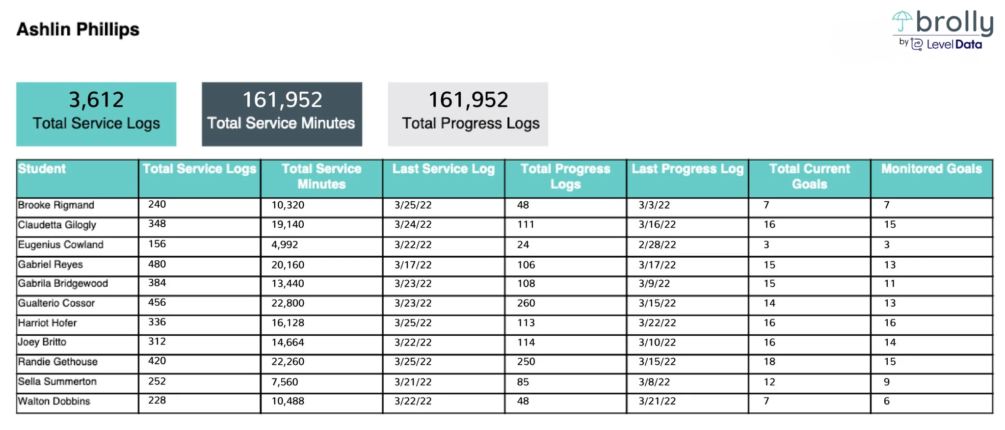With Brolly, a few minutes a week can give you a pulse on services provided across your district. With real-time data updates, you’ll have the information you need to identify ‘red flags’ as they come up.