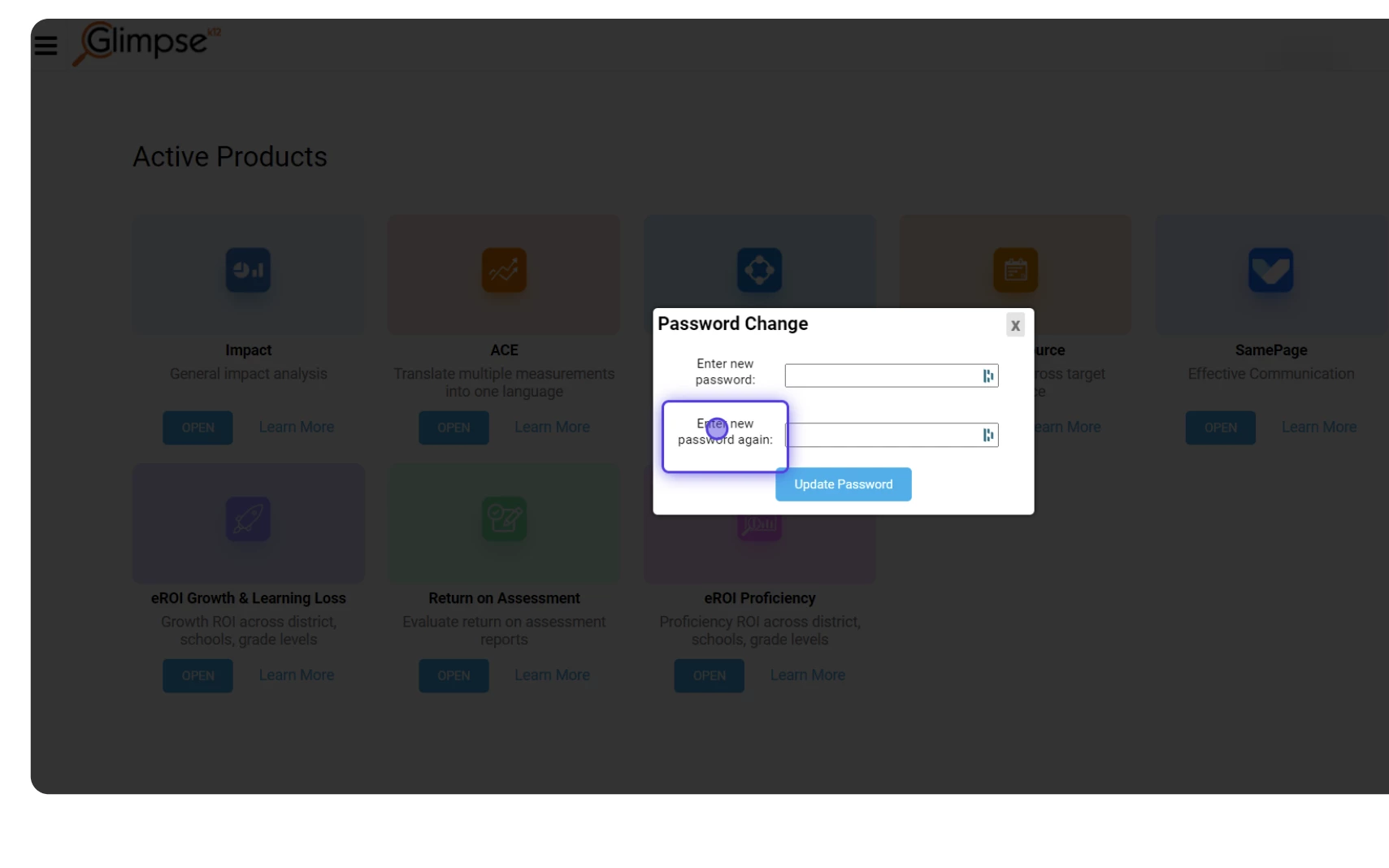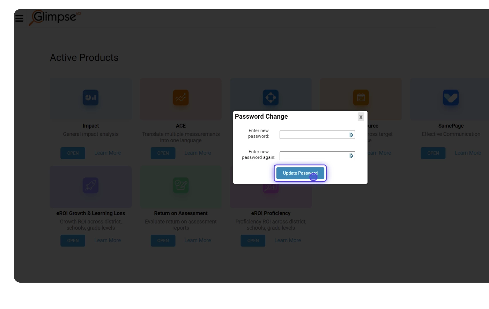 - Click on Update Password